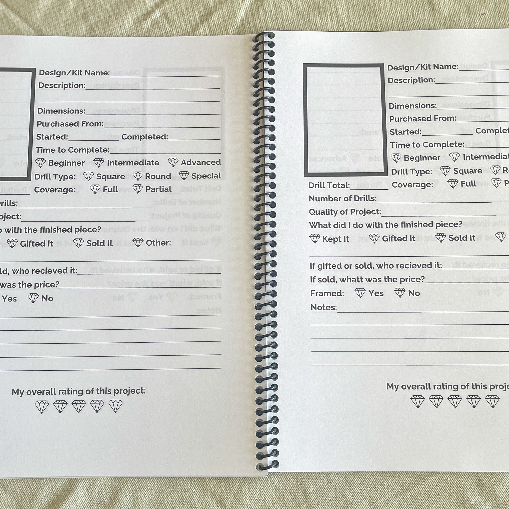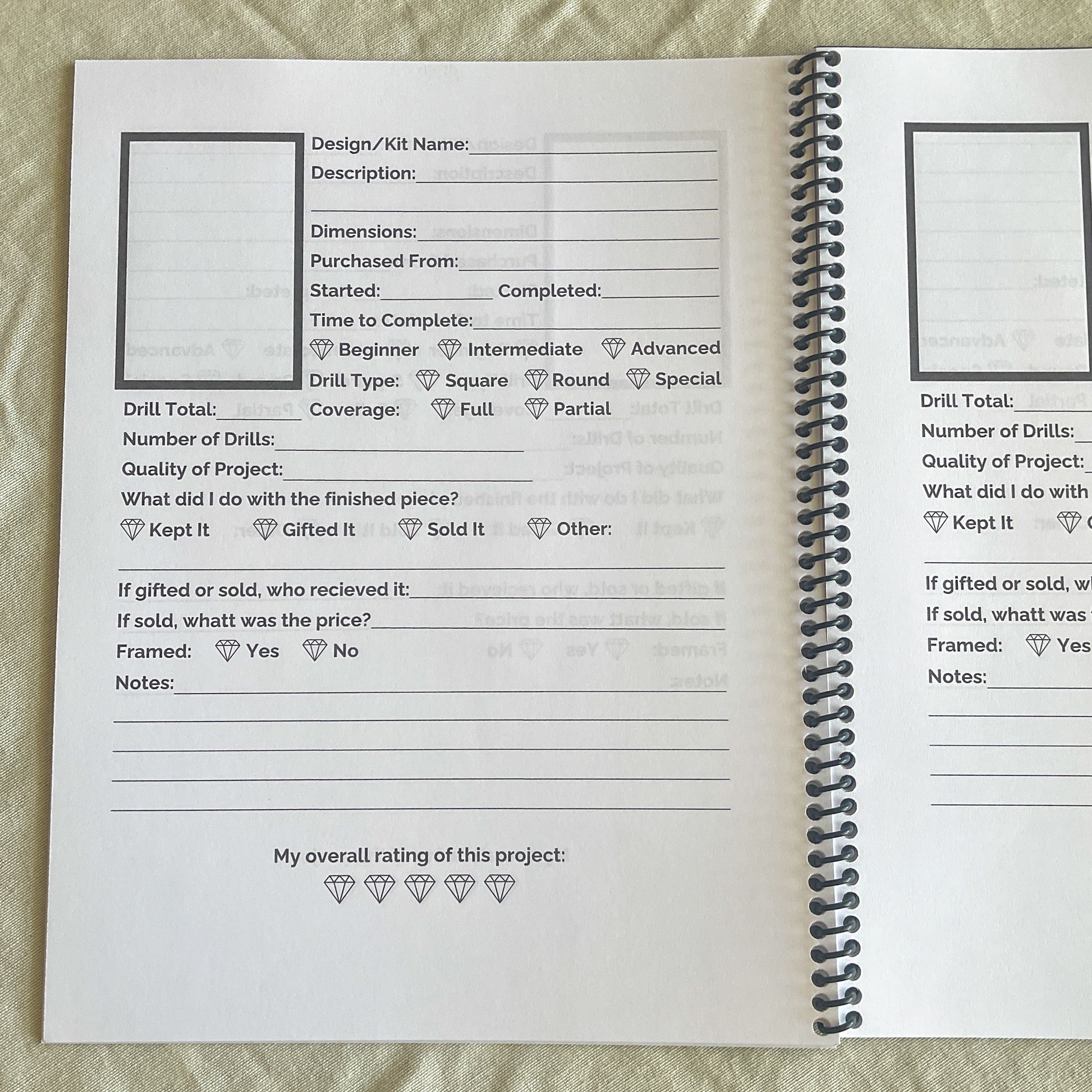 Want to track your diamond painting journey? This 8.5"x11" spiral bound book will help you create a record of each painting and your progress for 60 projects.