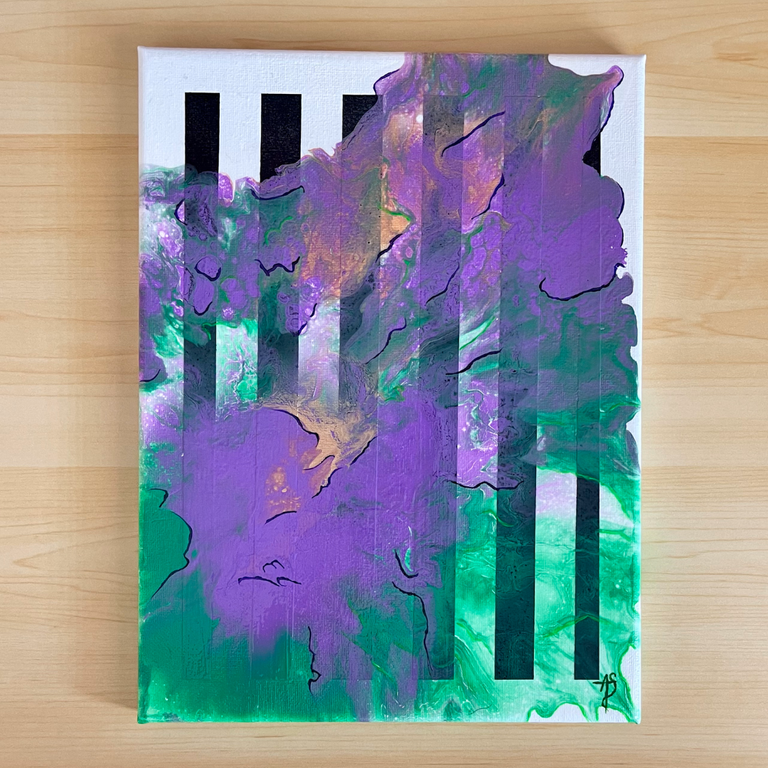 Get ready for Samhain with this colorful pour painting! This piece is great for seasonal decorating, but isn’t overtly ‘Halloween’ and can be enjoyed any time of the year.