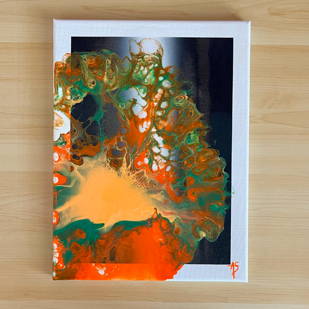 9x12x0.75 inch acrylic pour on back-stapled canvas.